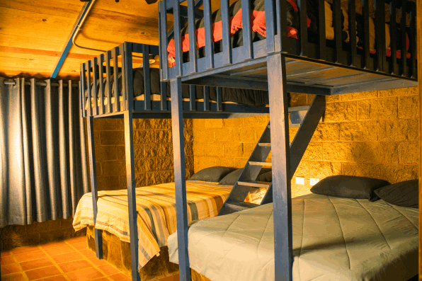 Dos de ellas con cama King y otra con Dos literas (cama baja matrimonial, cama alta individual)